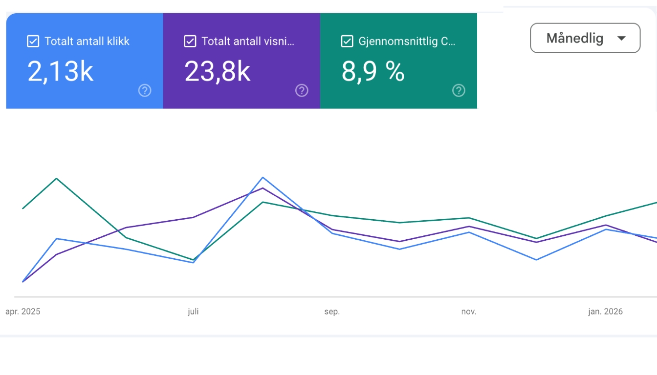 Over 20 000 organiske visninger og opptil 9% klikkrate fra Google